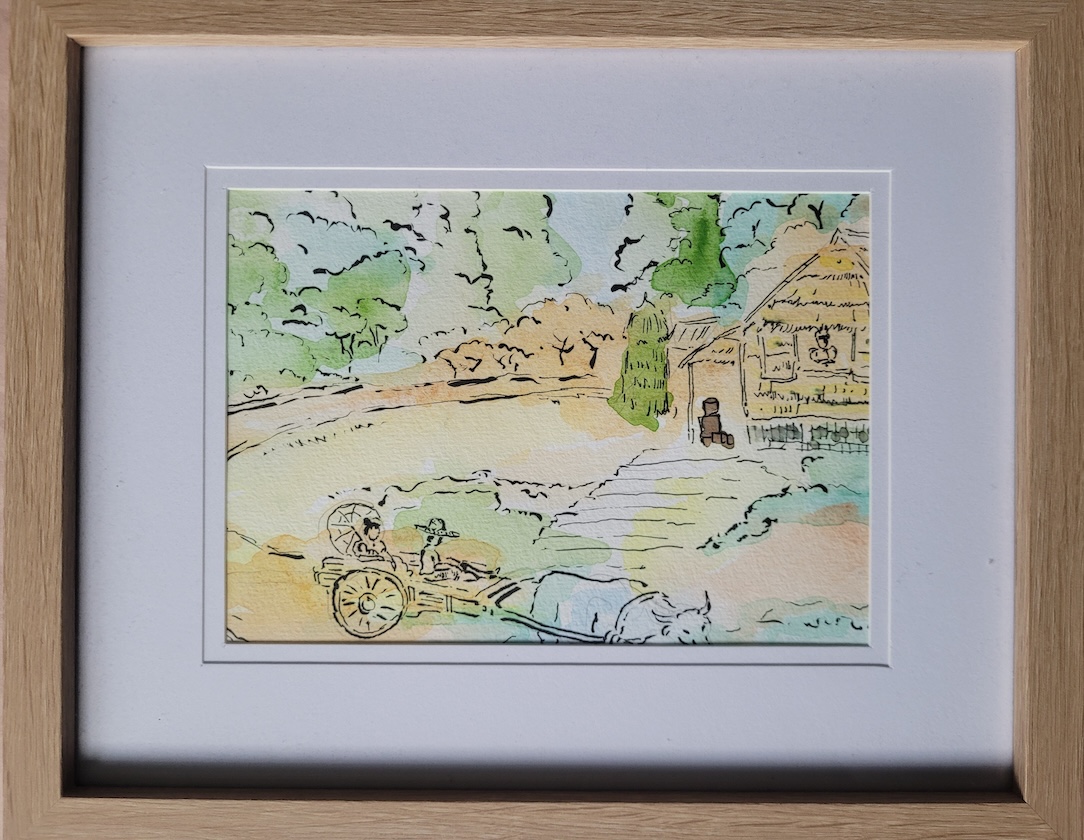 A view of Oriental Bay. Done using coffee stains, water colour and ink.